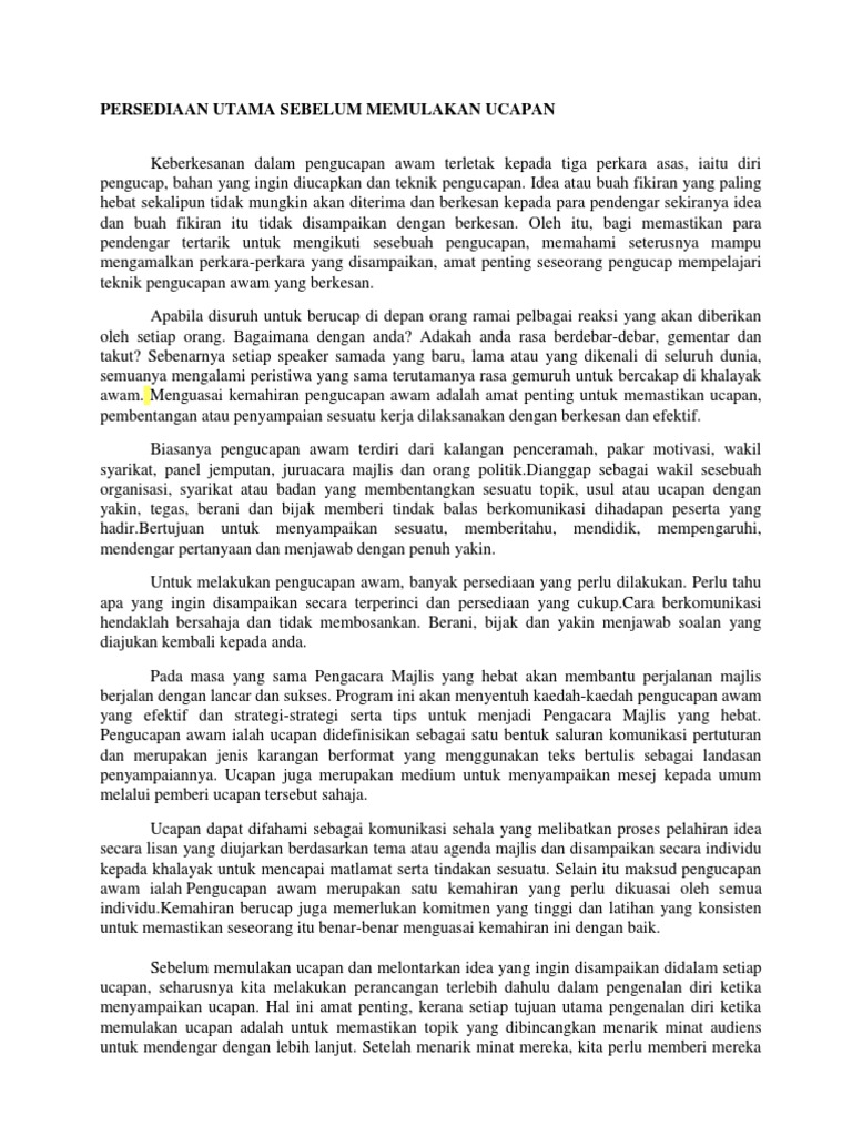 Persediaan Utama Sebelum Memulakan Ucapan Pdf